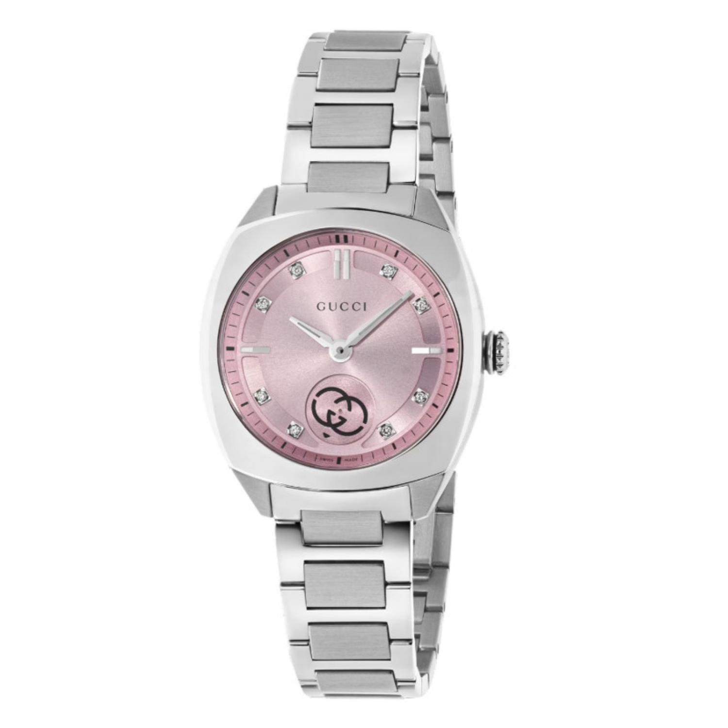 Pink dial with Interlocking G detail and 8 0.012ct Diamond index