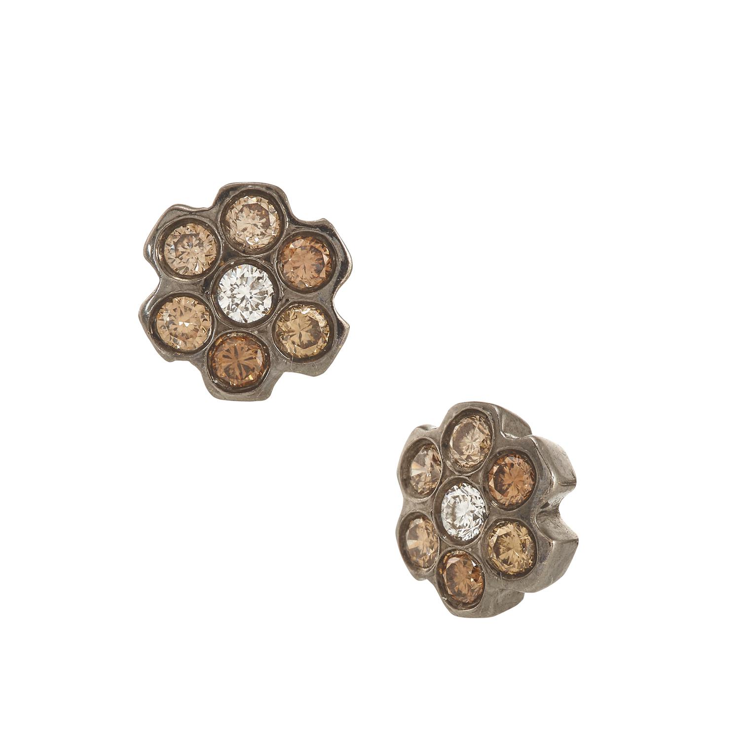 Stud earrings with chocolate and desert sand brown diamonds on black rodinated gold.