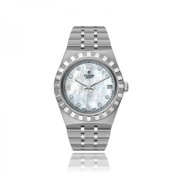 Screw-down winding crown in 316L steel adorned with the TUDOR logo in relief