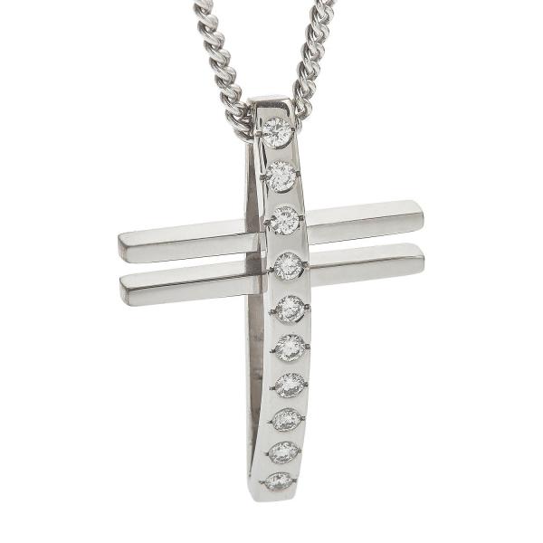 Sapphire Cross Pendant with ten 1.08ct sapphires and a 0.10ct brilliant cut diamond in 1.92gr 18k white gold.