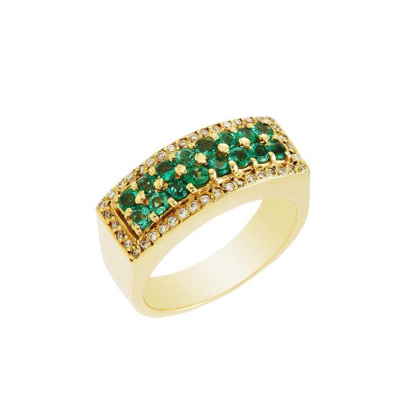 Green Lantern Ring with six 0.41ct princess-cut emeralds and a 0.08ct princess-cut diamond in 3.65gr 18k yellow gold.