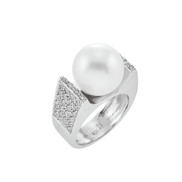 South Sea Pearl Canvas Earrings with two 13.70ct south sea pearls and six 0.16ct brilliant-cut diamonds in 4.10gr 18k white gold.
