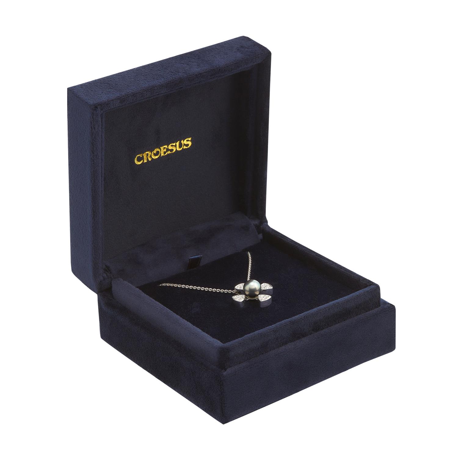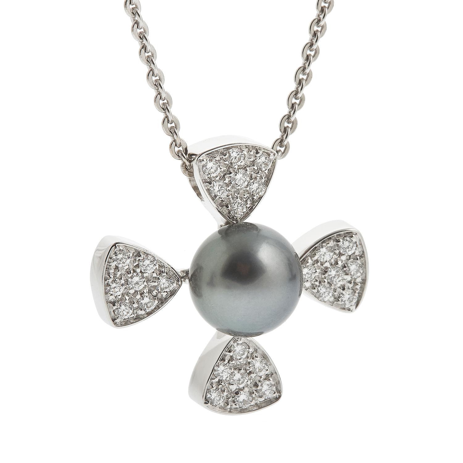Modern Baptism Cross with diamonds and Tahitian South Sea pearl (chain is not included)