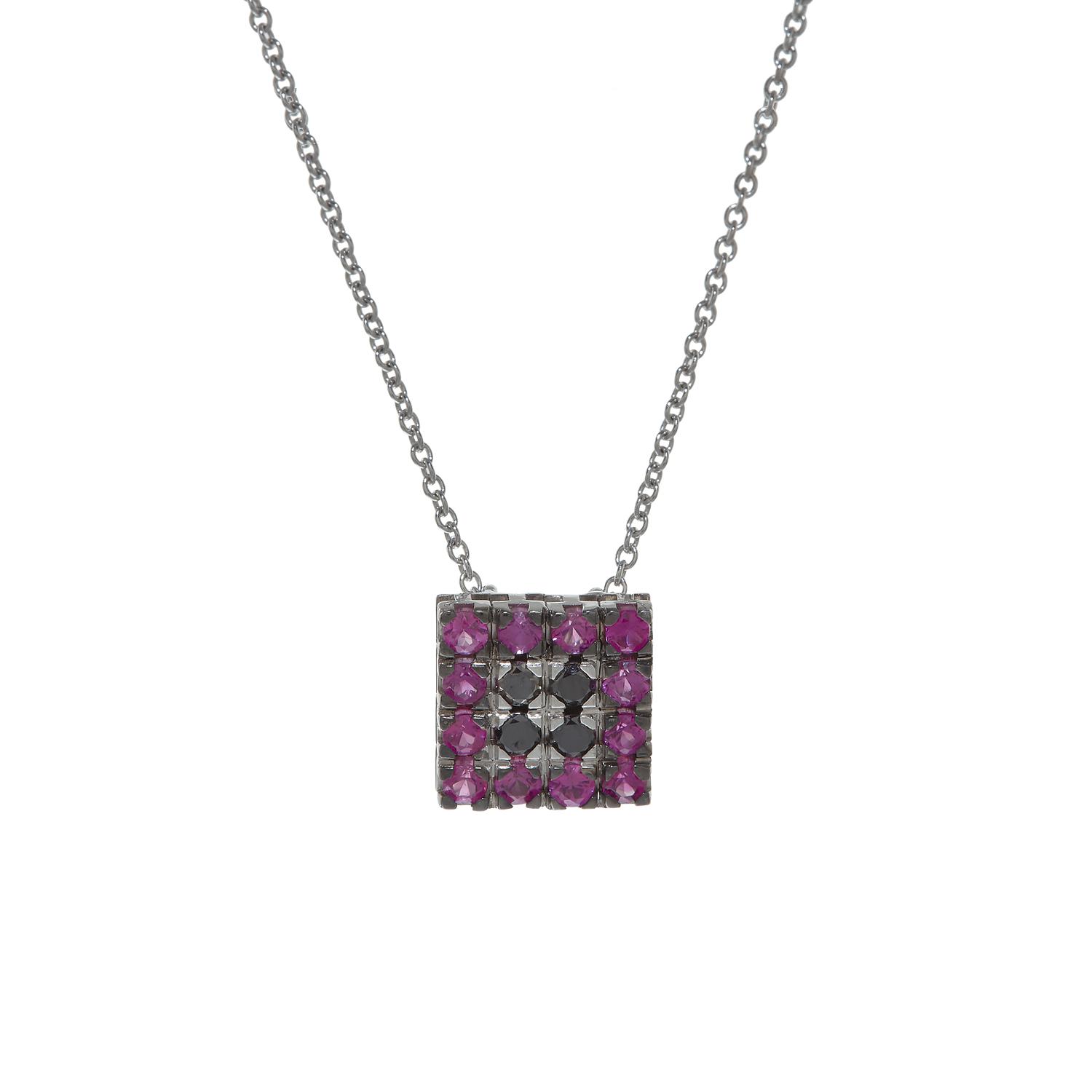 Pendant with black diamonds and pink sapphires on black rodinated gold.