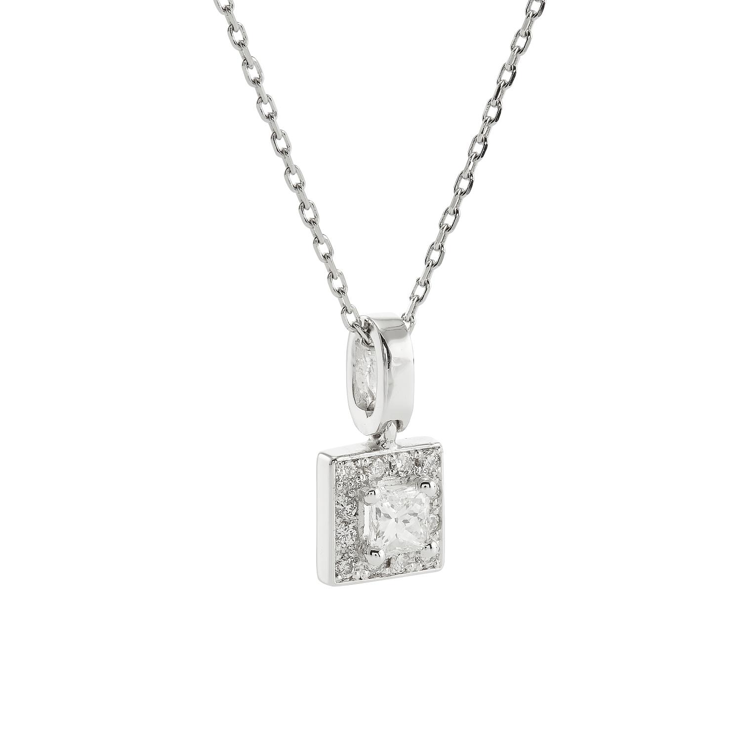 Solitaire pendant that beautifully combines mixed cuts of diamonds.