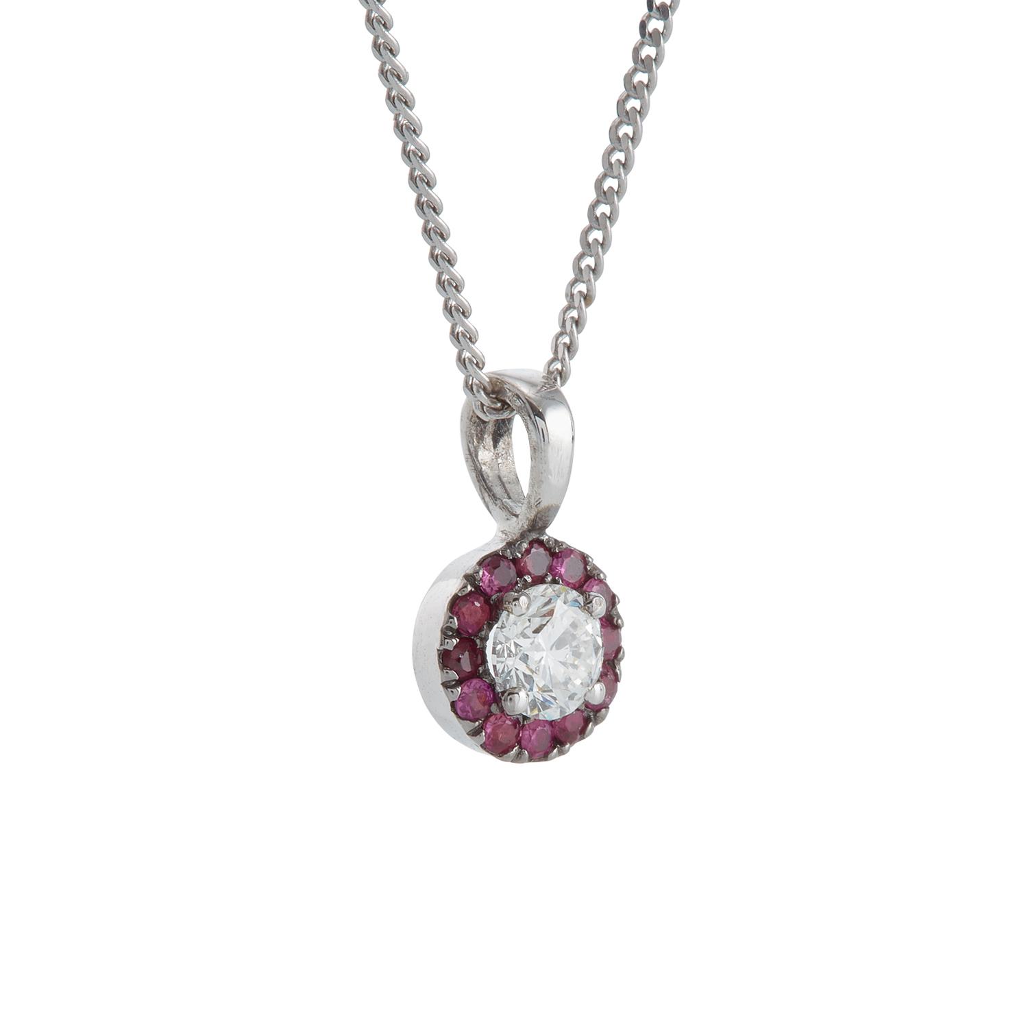 Solitaire diamond pendant with rubies.